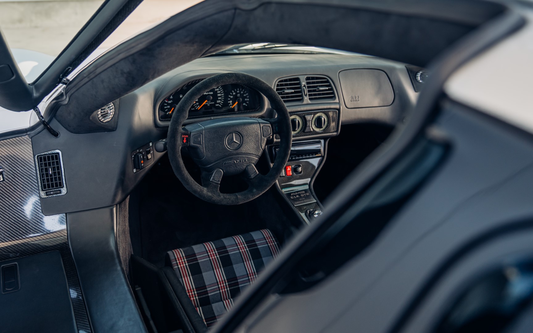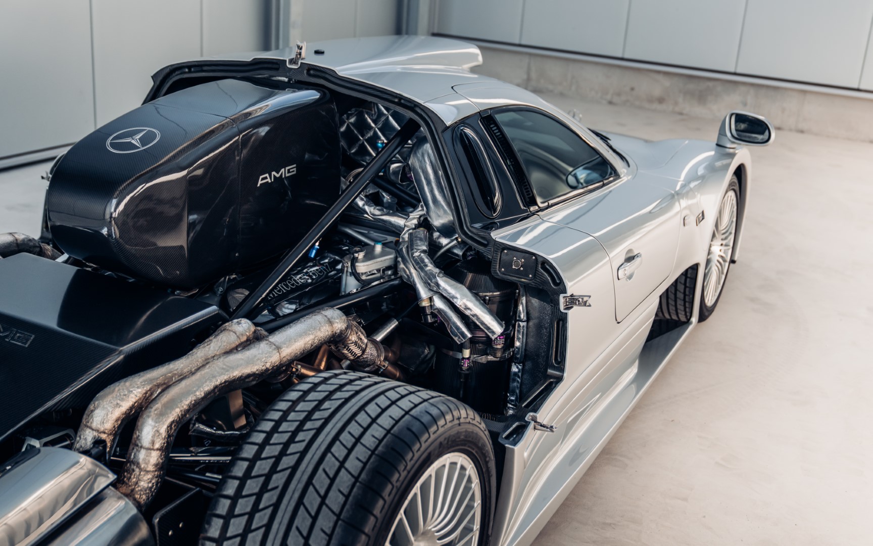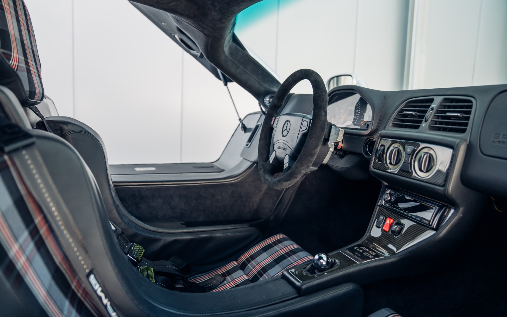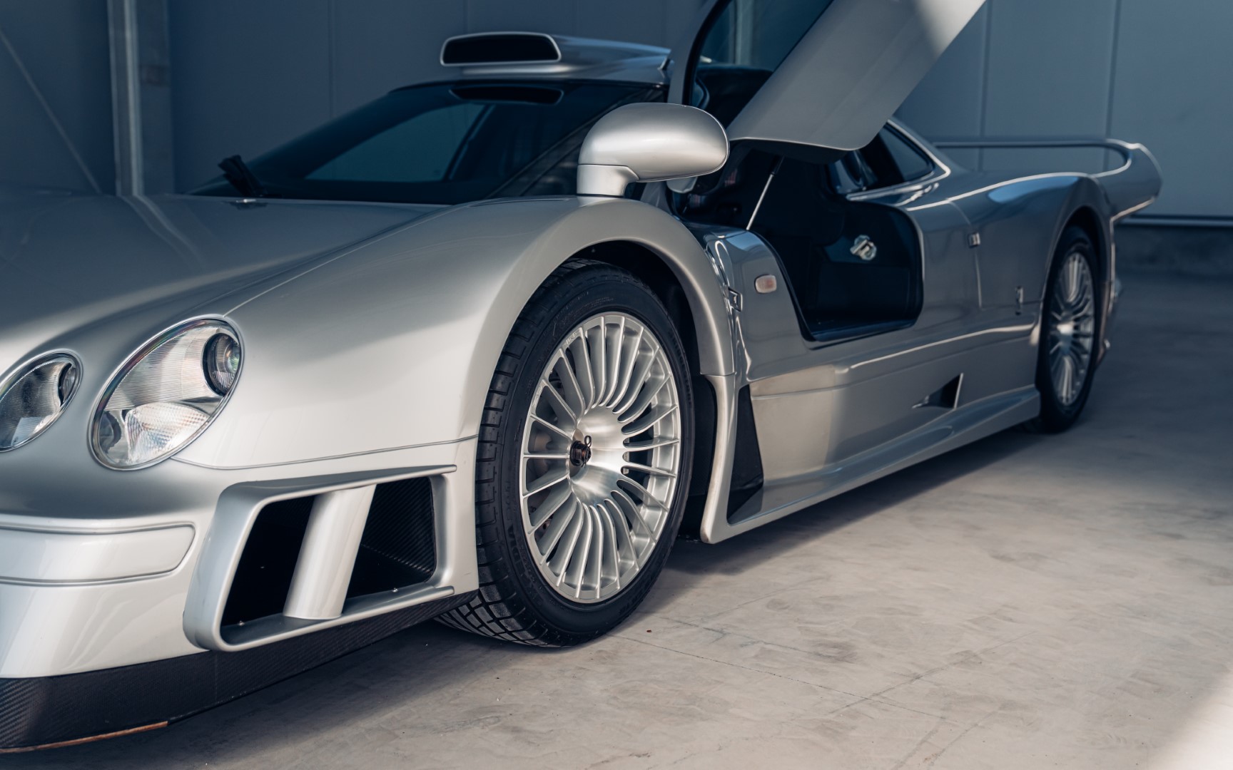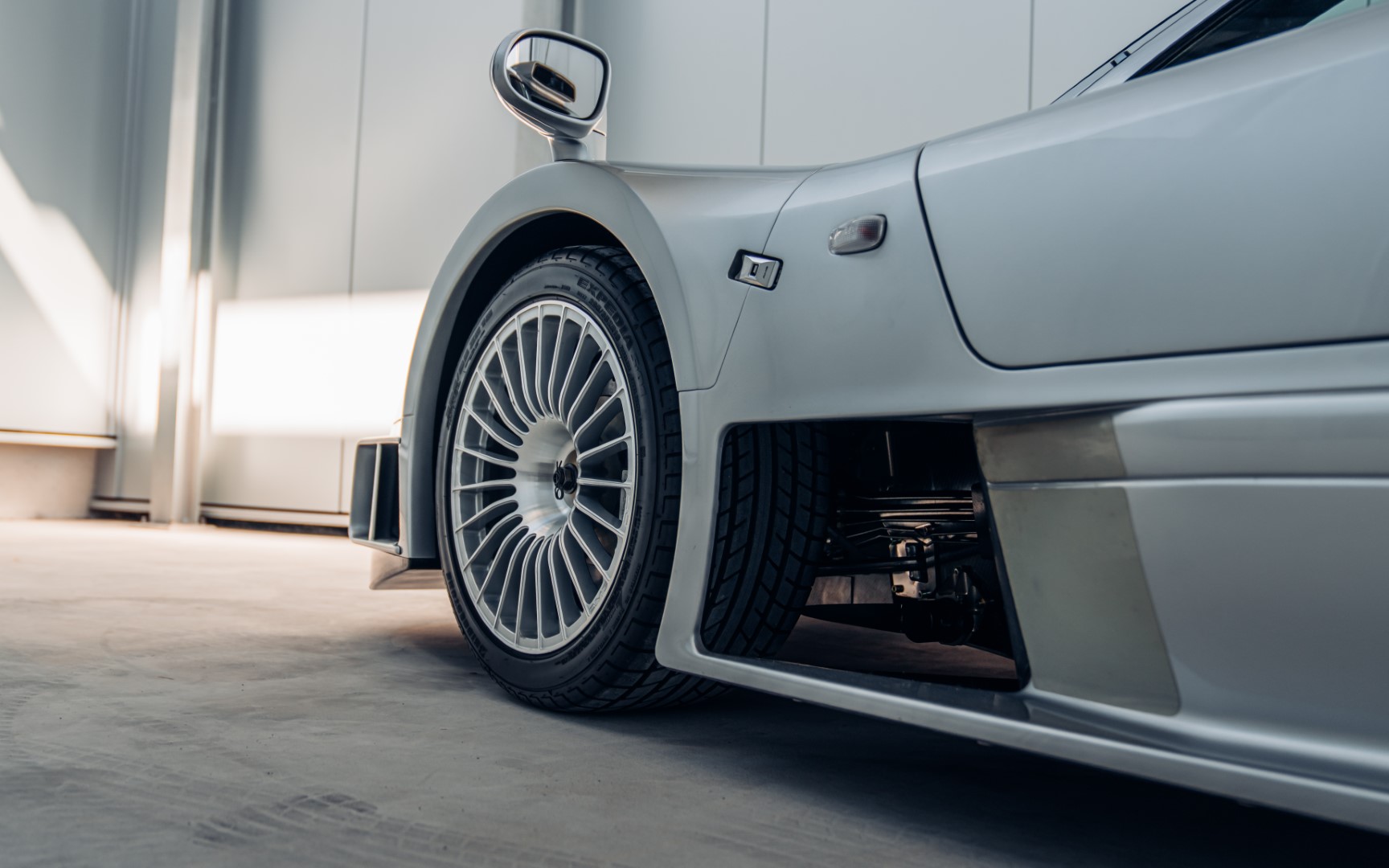 Your article mentions the carbon fibre bodywork, massive air intakes, and the sculpted rear wing, all confirming the car’s identity as a road-legal racing machine. Finished in Mercedes Silver 744, this example remains exceptionally well preserved, with less than 100 km since 1999, a fact that makes its exterior condition unusually close to factory delivery.