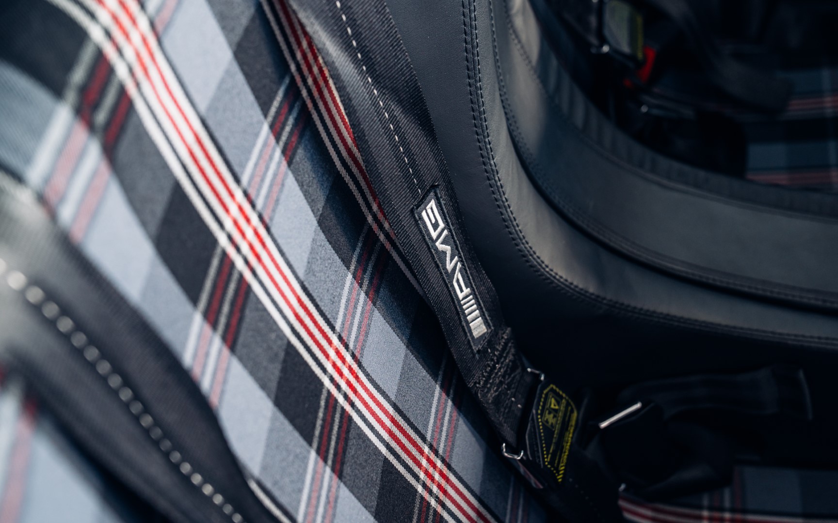 The example you describe features an interior trimmed in blue checked fabric, which makes it stand out from more conventional configurations. This choice reinforces its originality and level of preservation, particularly since the car has accumulated less than 100 km since new.