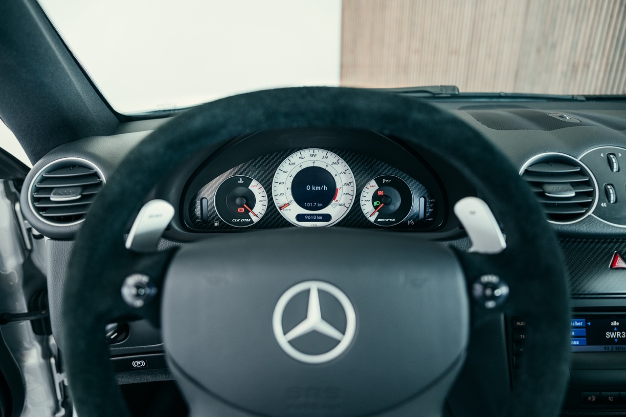 One of only 100 Mercedes-Benz CLK DTM AMG Coupés ever produced is now available through Stimpfig Automobile GmbH in Stuttgart, Germany. Finished in Brilliant Silver Metallic with a black Alcantara interior, this example shows just 9,497 km and remains in mint, original condition, featuring its factory-installed roll cage.
